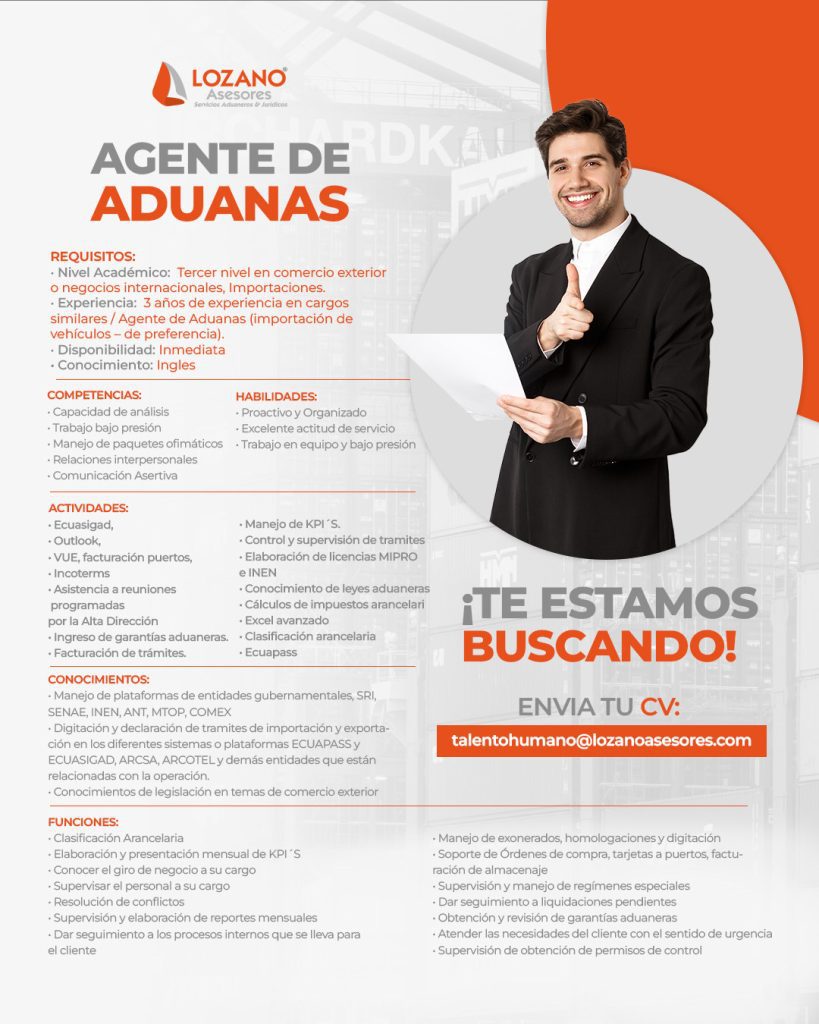 El agente de aduana es un profesional que se encarga de asesorar y gestionar los trámites aduaneros necesarios para la importación y exportación de productos.